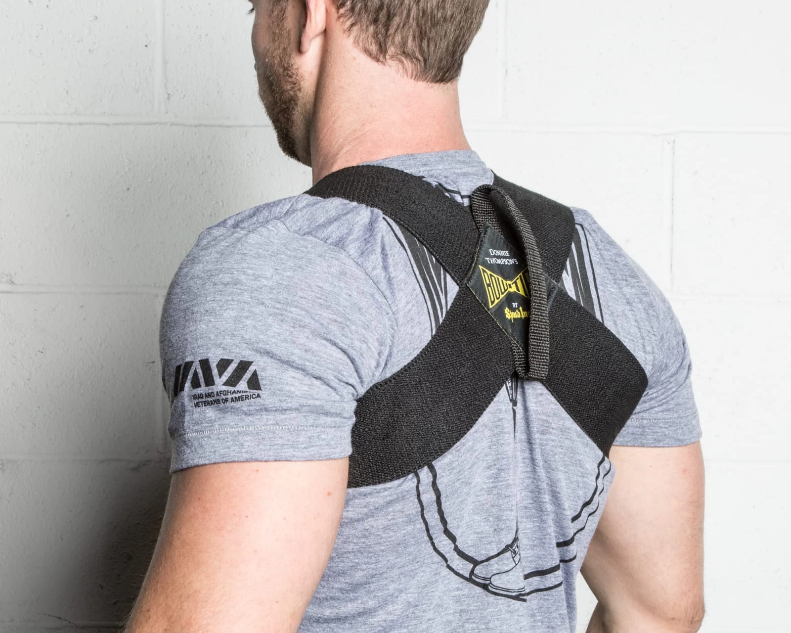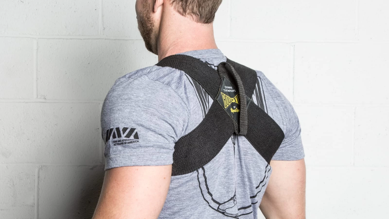 Developed by powerlifting legend Donnie Thompson and Spud Inc., the Casual Bowtie is a simple accessory for everyday life, helping to counteract the slouched posture that often develops when working at a computer, driving, or using a cell phone. Made from a softer material than the Thompson Formal Bowtie, this design is optimized for wearing over long periods of time as you go about your day. The webbing harness is light and comfortable and doesn’t encumber movement. It works by subtly encouraging sustained upright posture, easing tension on the muscles behind the shoulders and also applying light compression to the bicep tendons.