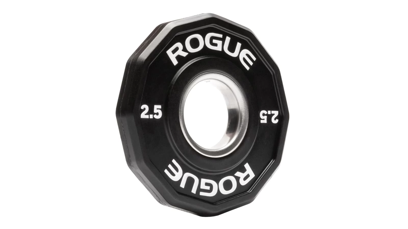 Rogue’s new patented 12-Sided Urethane Grip Plates feature a solid cast-iron core, impact-resistant polyurethane coating, and a unique dodecagon shape with angled edges to help prevent rollaway when a barbell’s on the floor. A re-engineered ledge grip design (on the 25 LB and above) also introduces tapered, recessed handle cut-outs on both sides. This allows athletes to quickly grab and pick-up from the center of the plate—no matter which side is facing out— rather than having to reach their fingers under the plate’s edges when it’s flat on the ground.