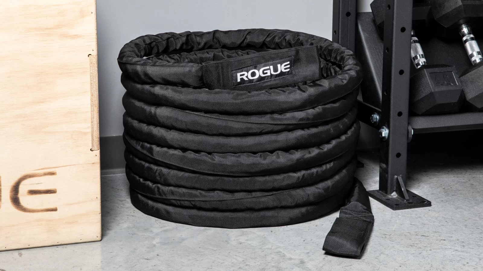 Our 45-foot Sheathed Conditioning Rope is made from durable polypropylene with an all-weather sheath/cover. The protective sleeve is folded over at the end to form a grip-friendly looped handle, and measures approx. 3” wide and 10” long from the end of the rope to the end of the loop (when laying flat). The diameter of the rope itself is 1.5”.