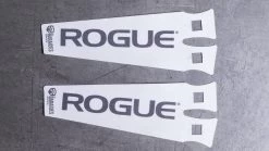 Rogue BarAides are durable, Military-grade hand grips developed specifically for high-intensity workouts, protecting against tears and abrasions. This RX brand of BarAides, available here in white with the Rogue logo in black, includes expandable finger holes (“one size fits most”) and a proprietary polymer core.