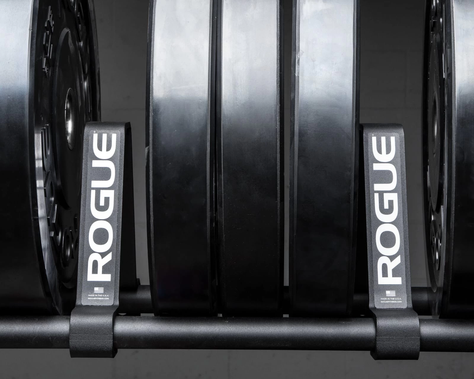When placed haphazardly on a horizontal plate rack without dividers, bumper plates of varying sizes can easily fall over and pile up, making it harder for the next athlete to locate and dig out the plates he needs. Rogue’s Bookshelf Dividers eliminate this problem, keeping bumpers upright and easily accessible, while also making it easier to arrange different sets of plates by size increments.