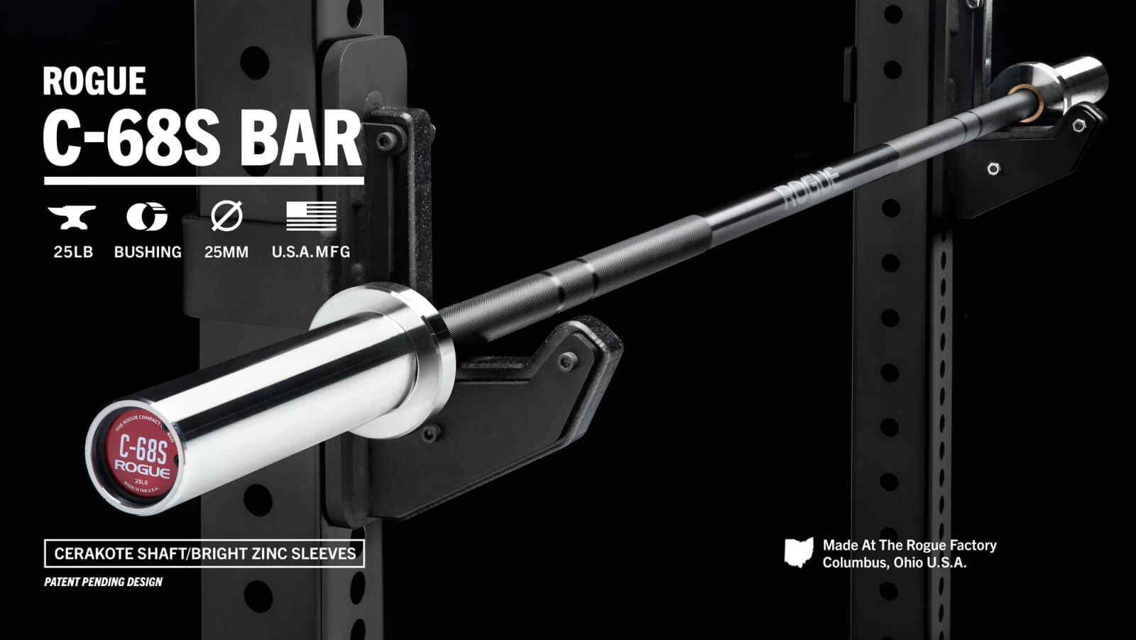 The Rogue C-68S Bar is a 25mm women’s version of the C-70S Short Bar. Introduced in competition at the CrossFit Games, this bar is nearly 11” shorter than our standard women’s Bella Bar, but sacrifices almost nothing in features or functionality. In fact, the C-68S Bar is among the most robust barbells we’ve ever produced, achieving an F-Scale rating of F-12R in durability testing. The gap between the sleeves is also a standard 51.5”, allowing athletes to rack the bar on any standard rack and perform movements that haven’t traditionally been practical with short bars, such as the snatch and overhead squats. In fact, the “S” in the bar’s name stands for “Snatch,” as the bar was developed to allow athletes to perform Olympic barbell movements in the tight confines of the CrossFit Games floor.