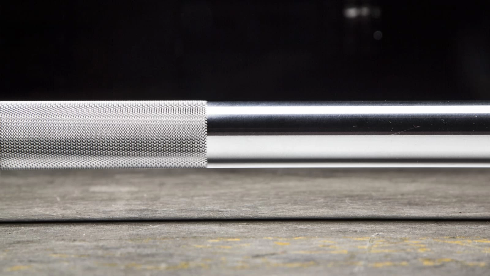 Starting with a 190,000 PSI tensile strength steel shaft and bright zinc finish, the Echo Bar also now includes an upgraded snap ring sleeve construction and exclusive Echo branded endcaps. There are single IWF standard Olympic knurl marks (no center knurl or powerlifting marks) and 16.40″ of loadable sleeve length.