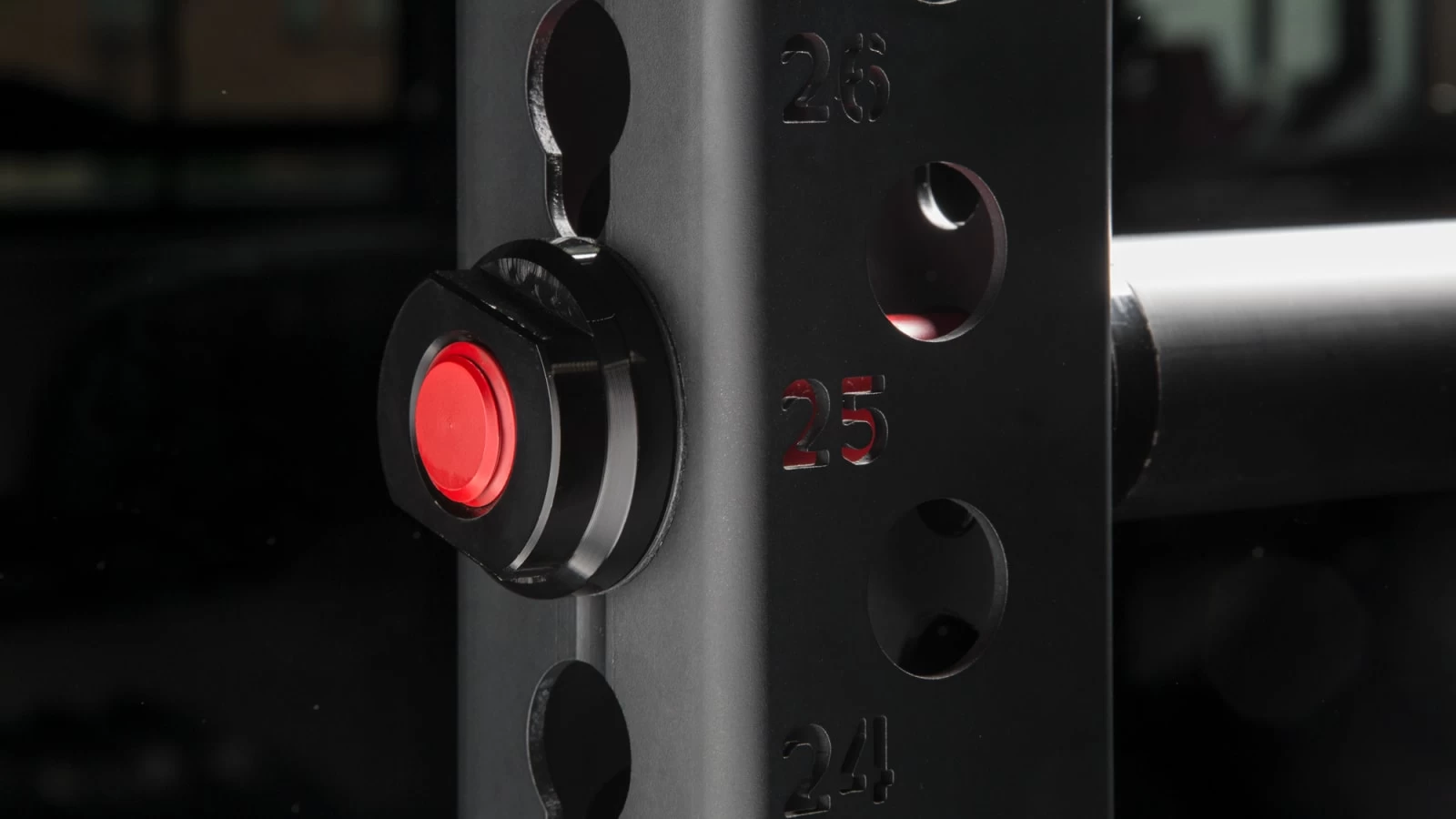 Both sizes of the Cerakote Red Monster Storage Pin are keyhole-style attachments intended exclusively for use with the keyholes* of Rogue Monster Series power racks, rigs, and wall-mount units.