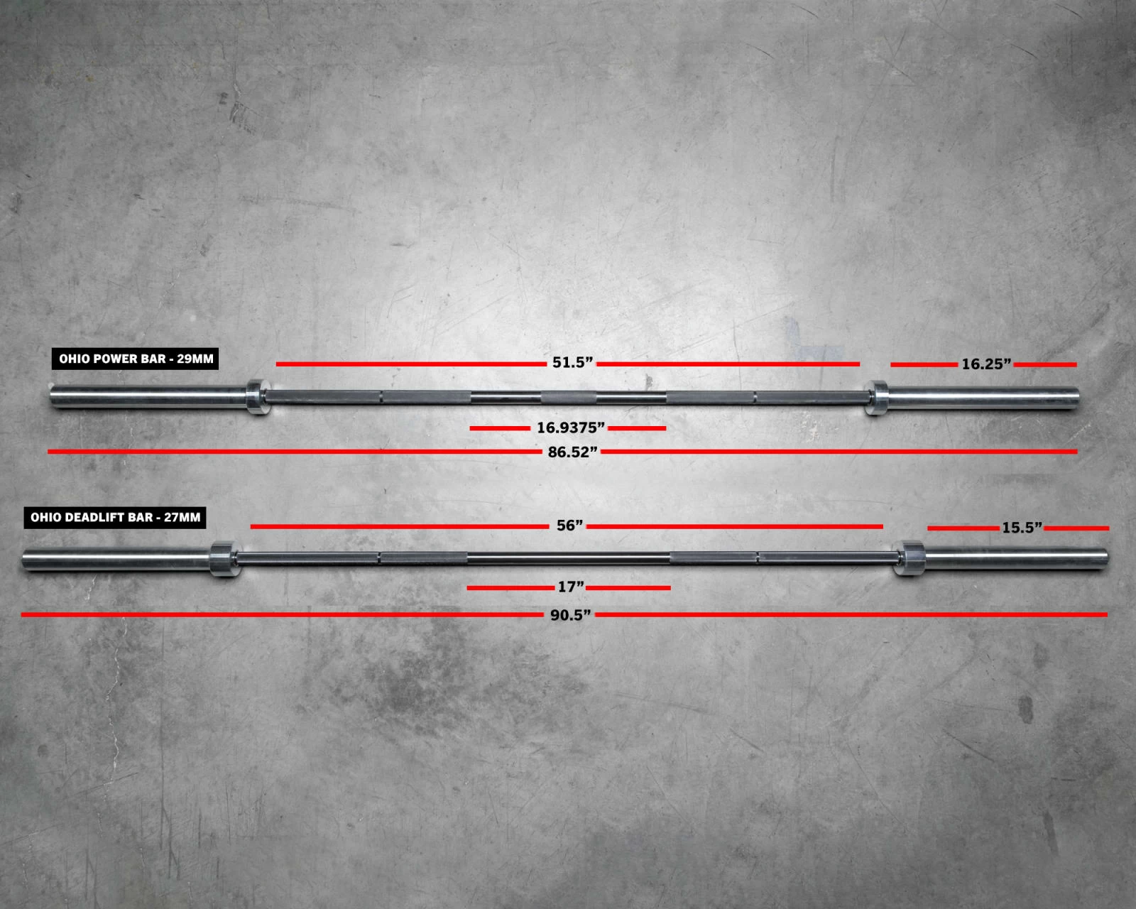 The Rogue Ohio Deadlift Bar is one of our finest, precision-engineered power bars to date, generating a higher amount of flex ideal for deadlifting. Machined and assembled in Columbus, Ohio, the ODB features a 190,000 PSI shaft with a comparatively thin diameter (27MM) and longer overall length (90.50″ is just within most powerlifting federation standards). This combination creates a bar that’s both easier to grip and designed for increased whip/flex when pulling. For many power lifters, that greater flex means being able to pull from a higher point before the plates break off the floor, potentially increasing the amount of weight that can be lifted in the process.