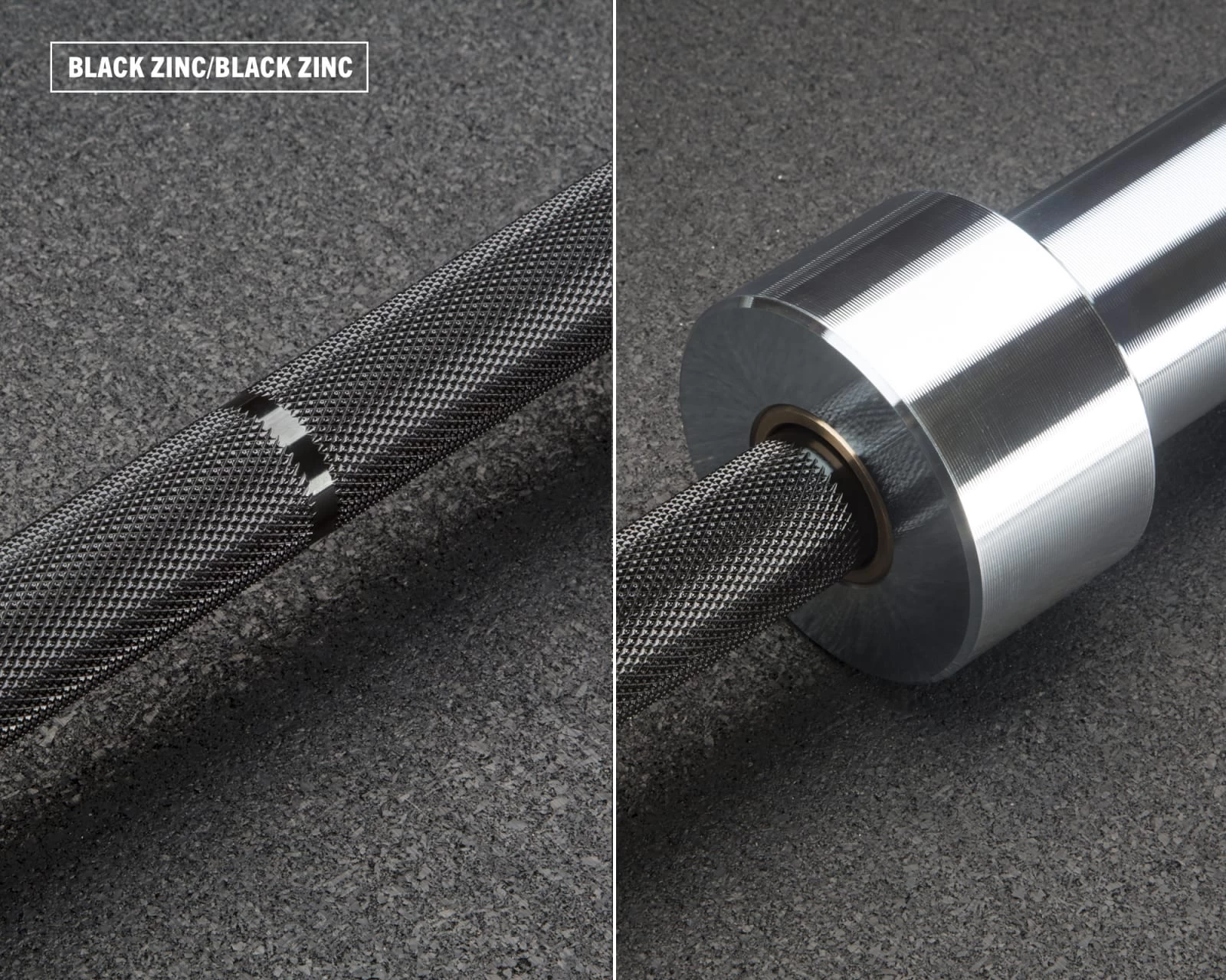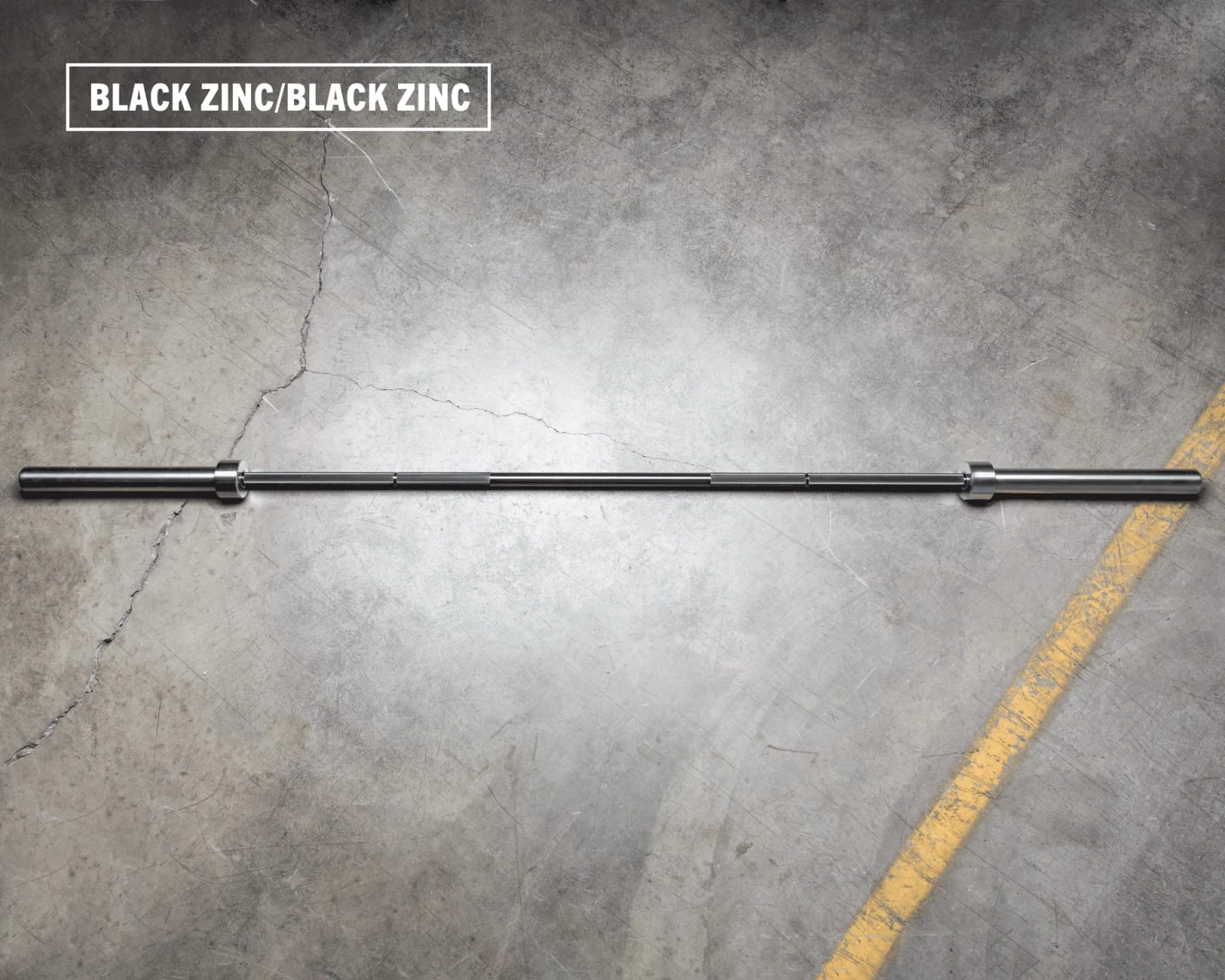 Like all Rogue bushing bars, the Ohio Deadlift Bar includes sleeves with a quality snap ring construction—far superior to the cheaply produced bolt-and-pin style sleeves of some other brands. The powerlifting knurl marks on this bar are a bit deeper / more aggressive than our Ohio Power Bar, but machined in the same pattern. There is no center knurl.