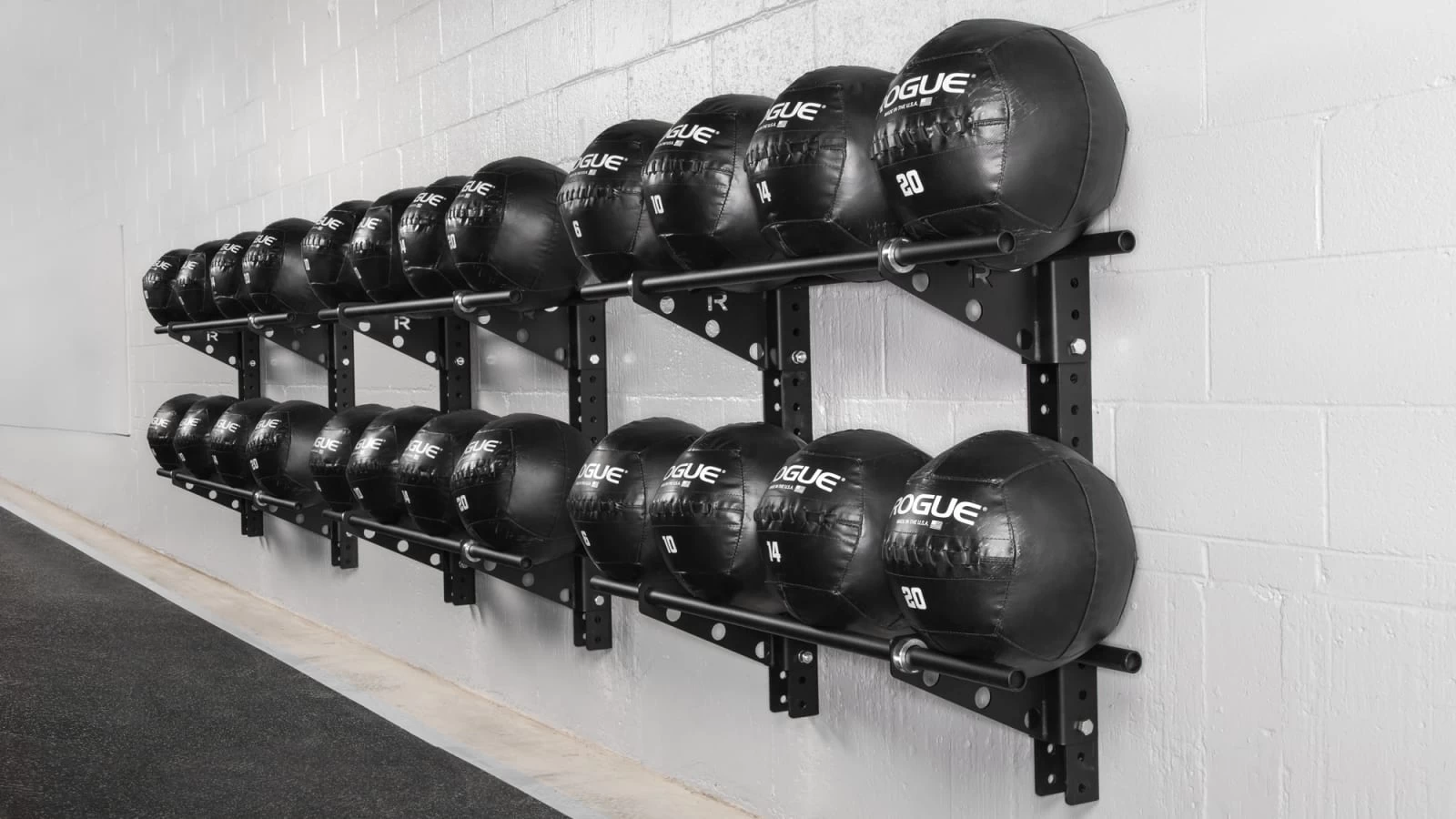 Expansion Options: For growing gyms that may need more medicine ball storage space in the future, Swiss Bracket units are easy to expand, either by adding more Strips® and pipe or by spacing the Strips® further out and swapping out longer pipes. You can also install a Wall-Mounted set of Swiss Brackets right next to a Strip-Mounted set, as the two versions are equidistant from the wall, creating a seamless look.