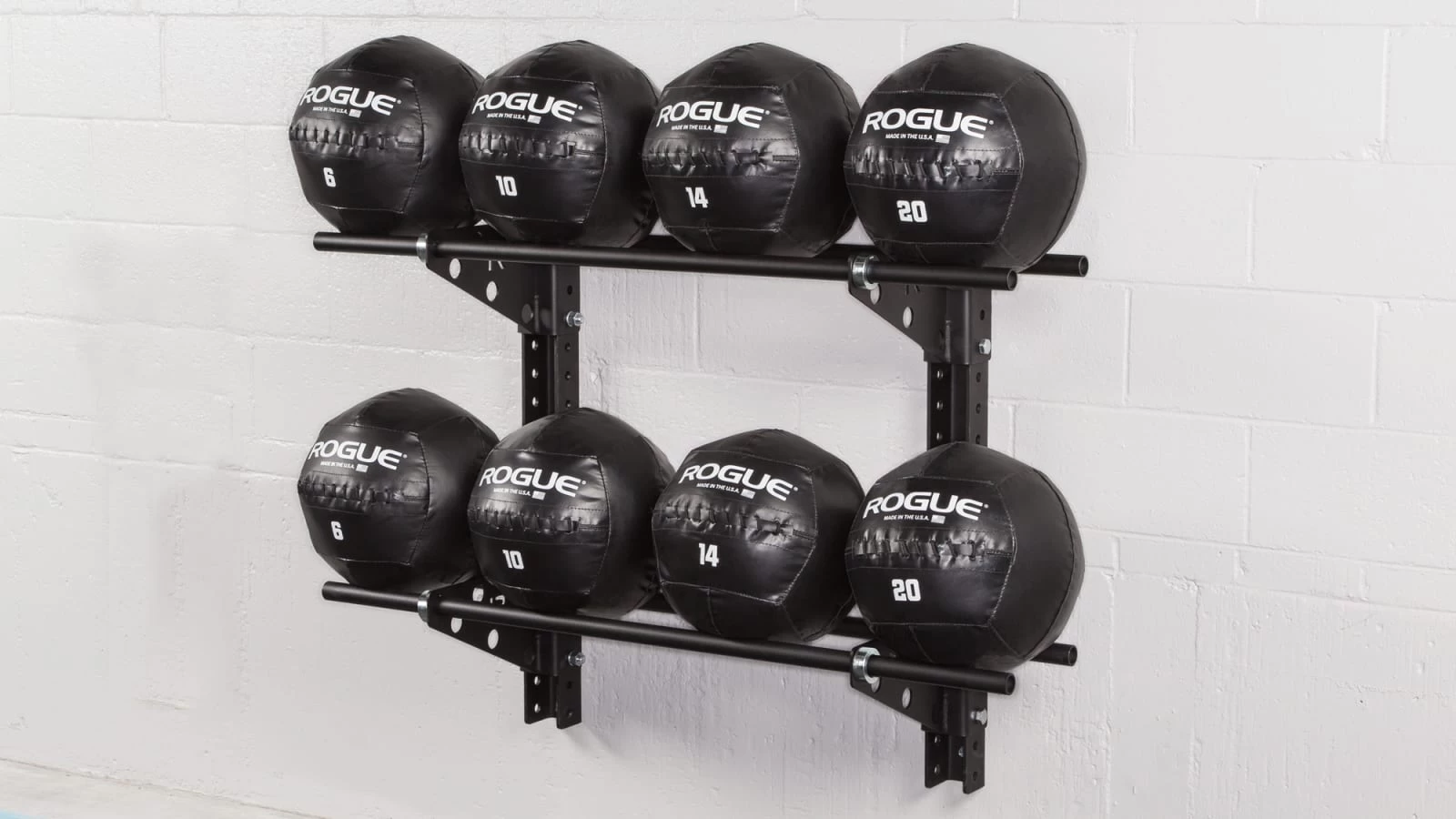 For any gym with more than a few medicine balls and less than enough storage space, Rogue Swiss Brackets are the zero footprint solution. Sold in pairs, these 0.1857″ thick laser cut steel brackets (packaged with a set of four shaft collars) allow gym owners to install a customized, wall-mounted medball storage rack in virtually any size training space.