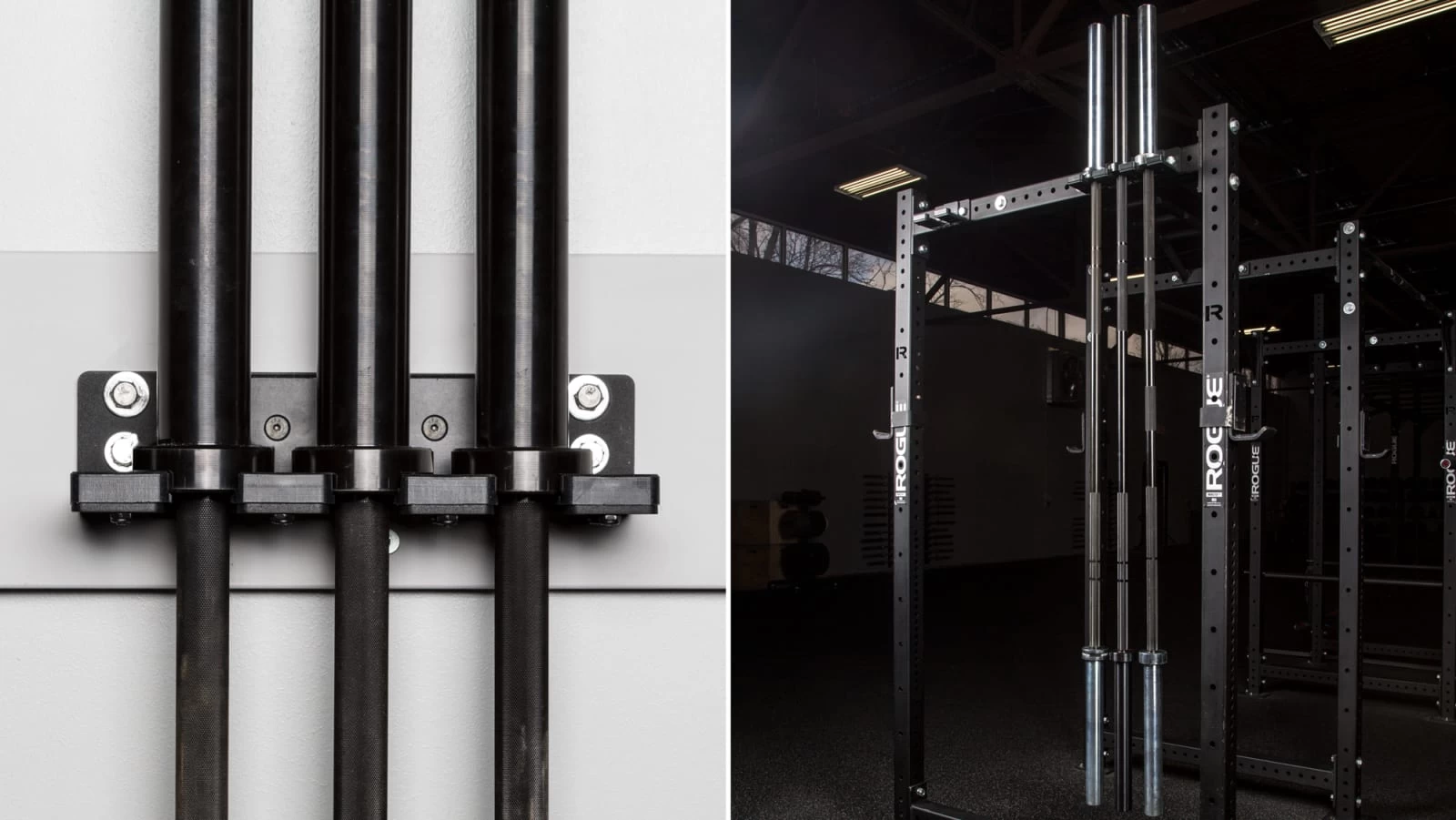 Available as a single-bar or triple-bar storage accessory, the compact Rogue Vertical Bar Hanger is made in the USA from 0.1875″ thick laser cut and formed steel, with a Protective UHMW plastic layer lining. Rather than sliding a barbell sleeve-first into a tube on the floor—like most standard vertical bar holders—this unit allows you to set up a wall-mounted or rack-mounted hanger that can store your bars efficiently above the ground, limiting the risk of any wear and tear during regular stowing and removal.