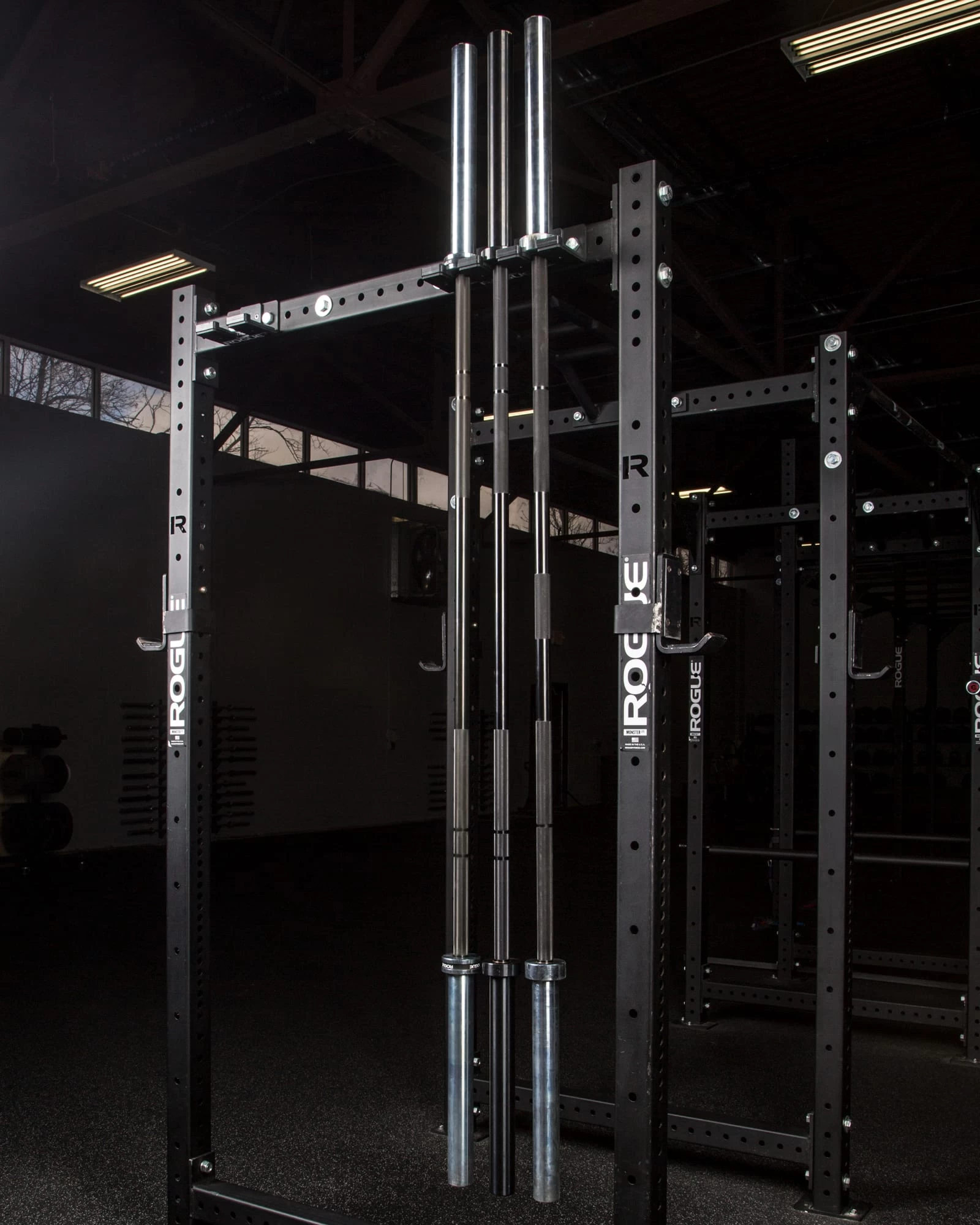 The rack-mounted version of the Rogue Vertical Bar Hanger comes with all necessary hardware, and is intended for use only with Infinity or Monster Lite Series rigs and racks. For owners of a Rogue Fold Back Rack, the Vertical Bar Hanger is particularly versatile, as you can still store your bars on the outside of one of the panels when the rack is folded in. The Vertical Bar Hanger is NOT recommended for use with specialty bars and the Rogue Beater Bar.
