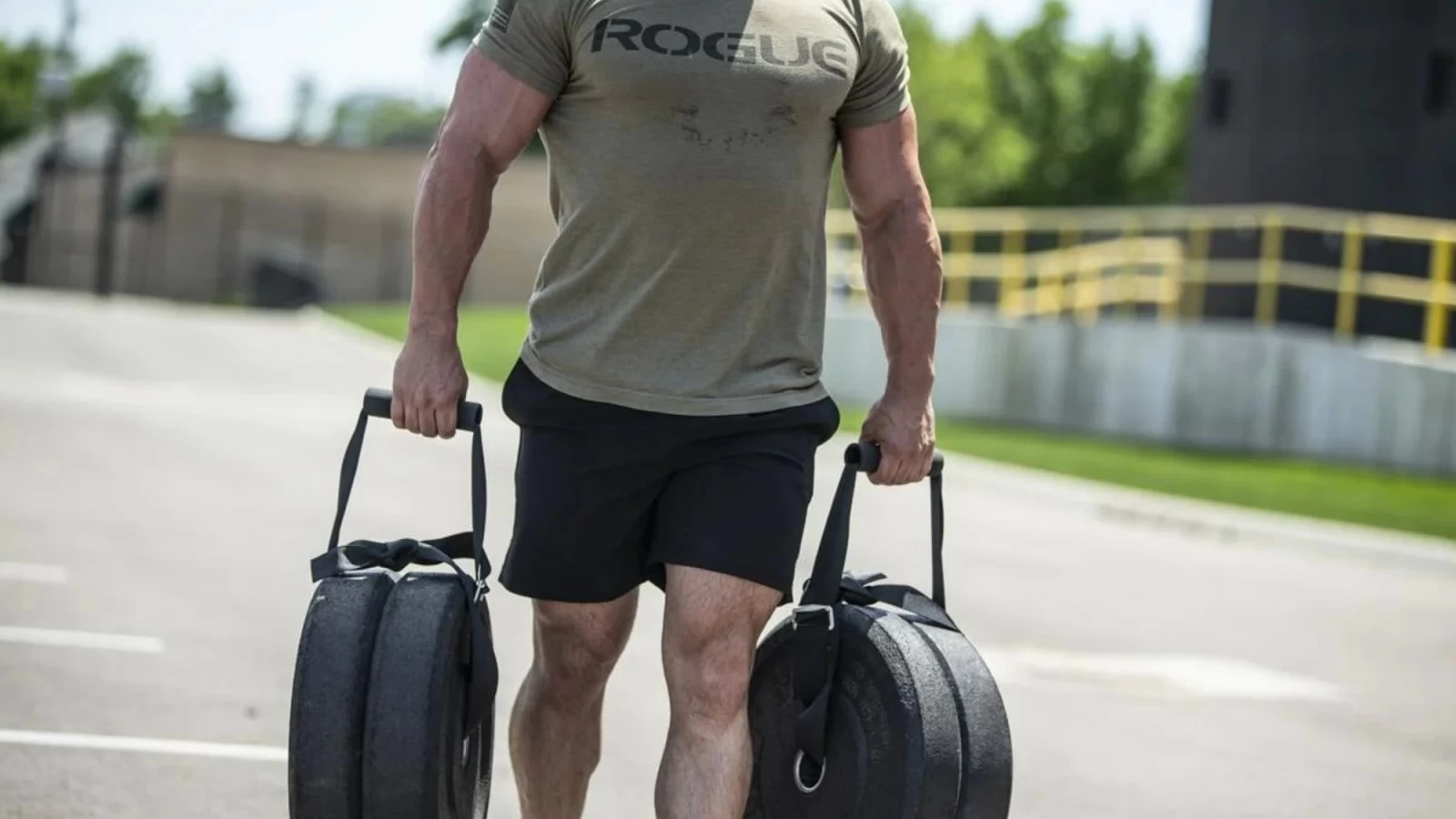 Each strap on the Traveling Farmer Walk Handles is long enough and durable enough to allow 300+LB of steel plates to be loaded.
